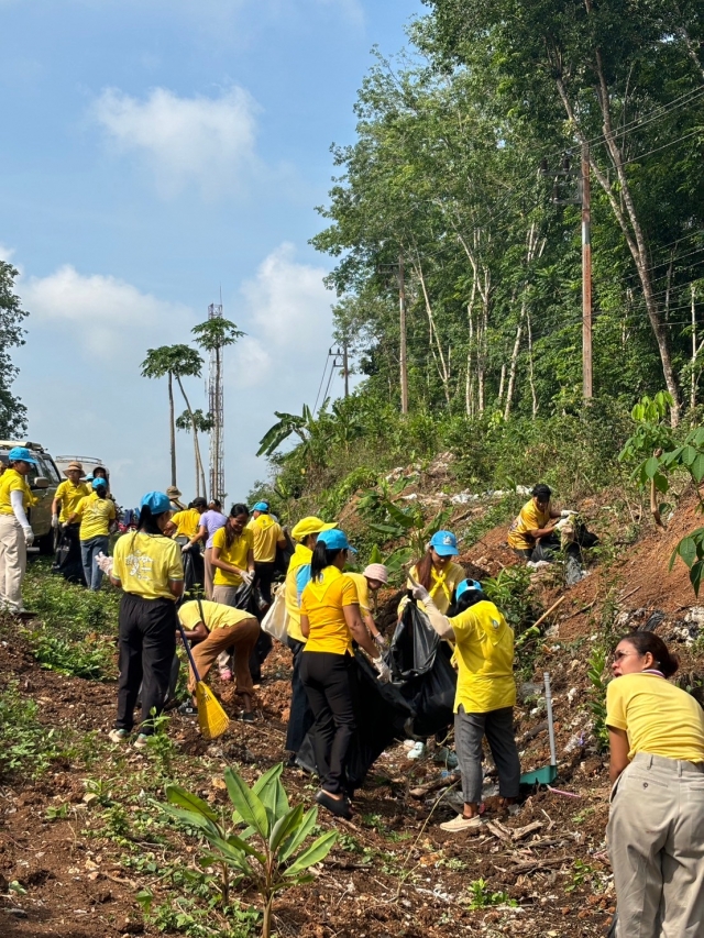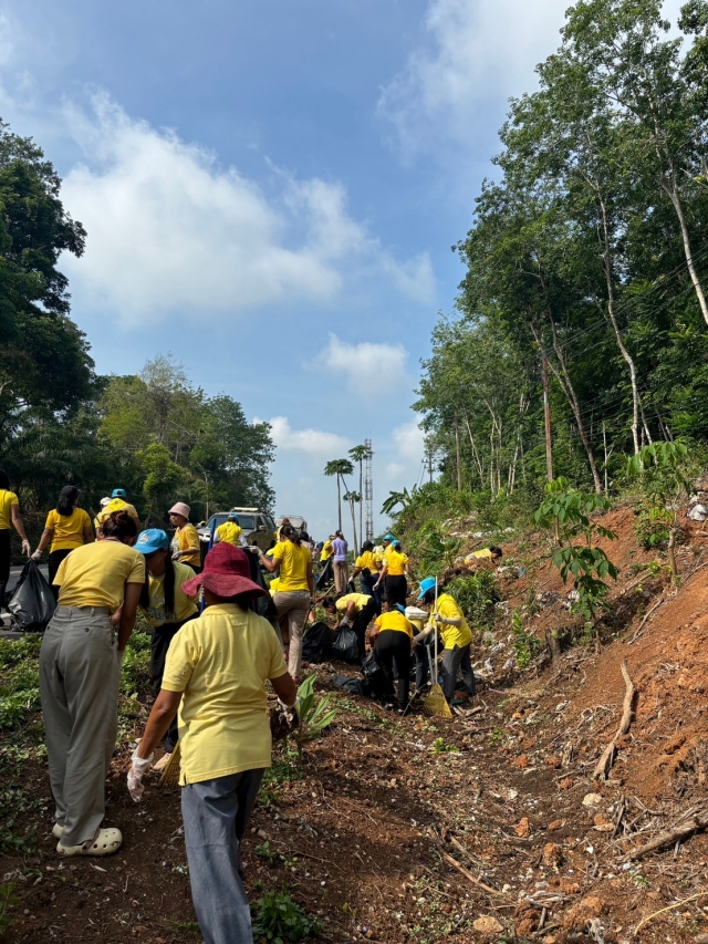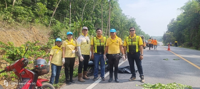 กิจกรรมทำความสะอาดพัฒนาสถานที่สาธารณะ ถนนสายทุ่งใหญ่ – ทุ่งสง บริเวณหน้าสถานีอนามัยบ้านควนฝามี โดยองค์การบริหารส่วนตำบลกรุงหยัน ร่วมกับ อำเภอทุ่งใหญ่ รพสต.บ้านควนฝามี อสม. ผู้ใหญ่บ้าน และจิตอาสา