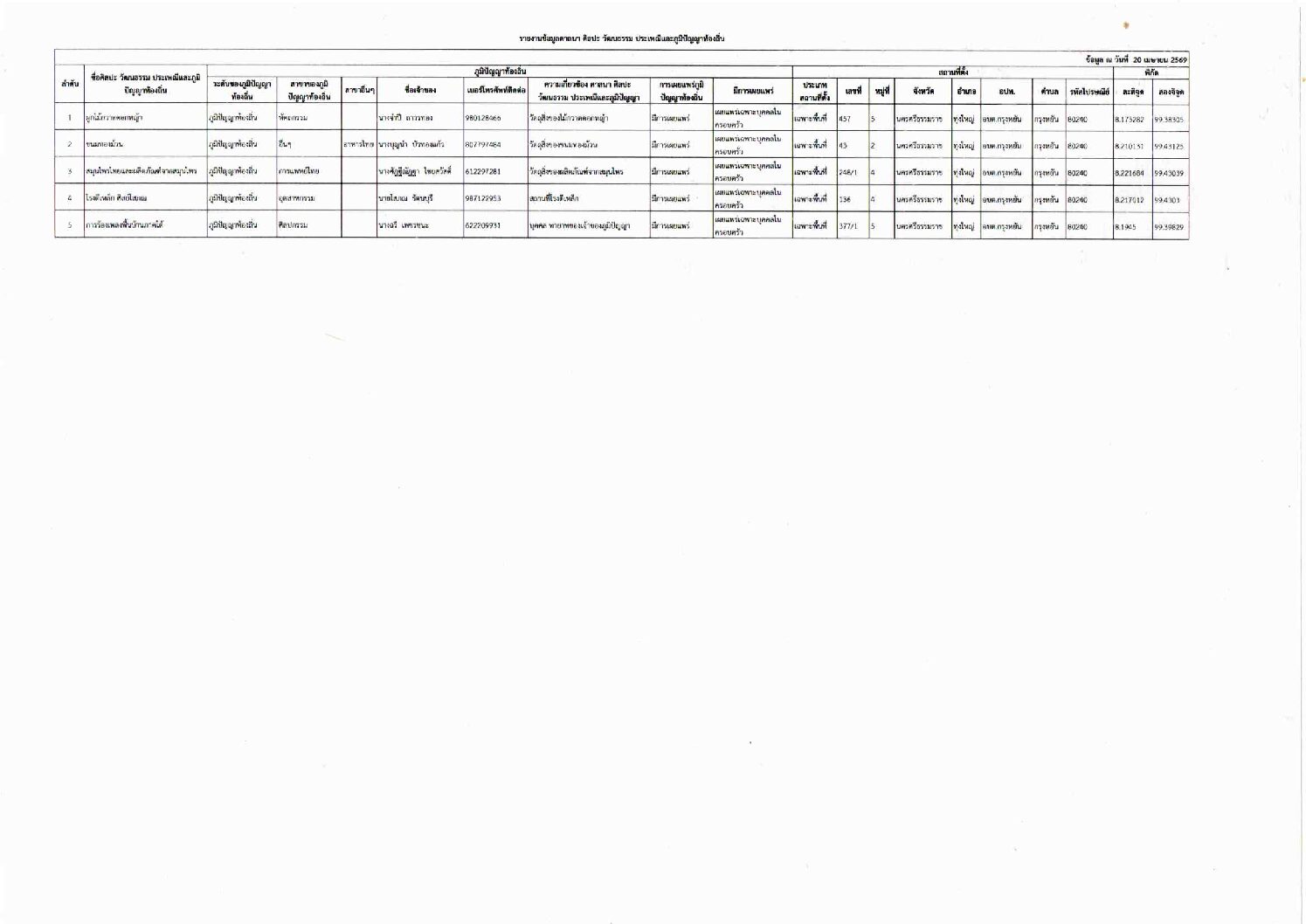 ประชาสัมพันธ์ข้อมูลภูมิปัญญาท้องถิ่น