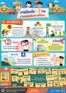Drug Free ห่างไกล ยาเสพติด รัฐบาลมีนโยบายชัดเจนในการแก้ไขปัญหายาเสพติด โดยมีนโยบาย 5 รั้วป้องกัน คือ รั้วครอบครัวรั้วโรงเรียน รั้วชุมชน รั้วสังคม และ รั้วชายแดน ซึ่งจะต้องมีมาตรการอย่างชัดเจน ทั้งมาตรการการป้องกันไม่ให้เด็กหันไปหายาเสพติดการป้องปราม และปราบปราม ดังนั้น หากมีเด็ก หรือ บุคลากรทางการศึกษา เป็นผู้ค้ายาเสพติด ก็ต้องป้องปราม และหากมีผู้ติดยาเสพติดก็จำเป็นต้องมีการบำบัดรักษา โดยจะมีโครงการต่างๆ เช่น TO BE NUMBER ONE โครงการเพื่อนช่วยเพื่อน กิจกรรมต่างๆไม่เว้นการต่อต้านการดื่มสุรา และ การสูบบุหรี่ เพราะสิ่งเหล่านี้ จะนำพาไปสู่การติดยาเสพติดในอนาคต ไม่เฉพาะนักเรียน นักศึกษาเท่านั้น แต่ทุกคนก็จำเป็นต้องเป็นตัวอย่างที่ดี แก่เด็ก และเยาวชน
